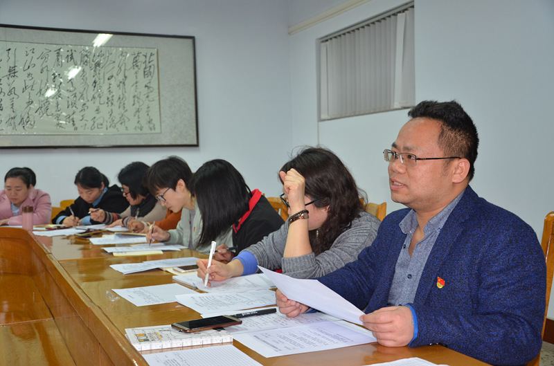 八年级党支部召开组织生活会暨民主评议党员大会 3月26日,按照学校党总支的统一部署,八年级党支部召开了组织生活会暨民主评议党员大会,全体党员在教研科技楼三楼会议室参会,校党总支副书记马德军参加了会议。 会议由支部组织委员邵凡主持。全体与会党员佩戴党徽肃立,高声齐唱国歌。接着,所有党员庄严举起右手重温了入党誓词。然后,党支部书记陈菊萍就本次党组织生活会作主旨讲话,通报了本支部2017年以来的工作、查摆问题整改落实以及本支部班子召开支部委员会查摆问题、开展批评和自我批评等情况,提请全体党员对支部班子的工作、作风等进行评议和测评。她强调,各位党员在生活会上,要抹开面子、讲认真,大胆开展批评与自我批评。在其后的党员自评环节中,各位党员积极发言,分别就自己的优缺点进行了比较深刻的剖析和自我批评。互评环节,党员老师们主要对我们这个年轻的党支部的建设提出了中肯的建议和期待。随后,全体党员对支部委员会以及每一个党员进行了书面的等级评议。 最后,校党总支副书记马德军作了总结发言,他指出这次会议是一个良好的开始,让支部的每一位党员找到了家的感觉,虽然有些环节进行得不够充分,但整个会议程序清晰,可圈可点。马书记殷切希望每一位党员老师加强学习,增强党性修养,发挥先锋模范带头作用,为把我校建设成为湖北名校而共同努力奋斗! 会后,经过统计,陈菊萍、朱宏、邵凡、陈志鹏、任江涛、马玲6位老师被评为本期优秀党员,并将上报襄阳五中党委。 会议准备中 奏唱国歌 重温入党誓词 重温入党誓词 八年级党支部书记陈菊萍讲话中 任江涛老师自评 张武老师自评 陈志鹏老师互评中 邵凡老师互评中 老师们认真评价打分 校党总支副书记马德军讲话