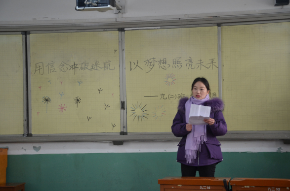 家长师生齐参与 欢声笑语庆元旦 九年级召开师生恳谈会 12月28日上午,为庆祝2019年元旦,按照学校工作安排,九年级召开“师生恳谈会”。全体九年级师生及部分家长代表参加。 恳谈会以班为单位,以“增进理解・增进沟通・增进友谊”为宗旨,以师生、家长的发言和感言为中心,以轻松欢快的表演为载体,着重对学生的以往学习进行总结反思,对今后学习确定目标、定好措施,力争实现明年中考“连年红”为总体指导思想。各班在这一原则指导下开展了丰富多彩而又富有实效的活动:同学们对自己的总结精准而全面,对老师提出的建议中肯而实在;家长代表的讲话语重心长,满含殷切希望;老师们的发言情真意切,为学生鼓劲扬鞭;才艺展示大显身手,师生同台演绎精彩;聊天茶话好热闹,零食小吃无限乐…… 在本次恳谈会召开之际,马校长寄语九年级:犬年已展千重锦, 岁再登百步楼,腾龙快马逢盛世,金榜再现九年级!他祝九年级师生新年恳谈活动气氛热烈,快乐开心,明年中考再创佳绩! 九年级年级主任陈菊萍指出恳谈会扎实有效。她表示,全校欢聚一堂、载歌载舞、敞开心扉、释放心怀,带着祝愿、带着期盼,迎接小五辉煌的未来! 撰稿/摄影:马玲 学生畅谈 家长和班主任乐开怀
