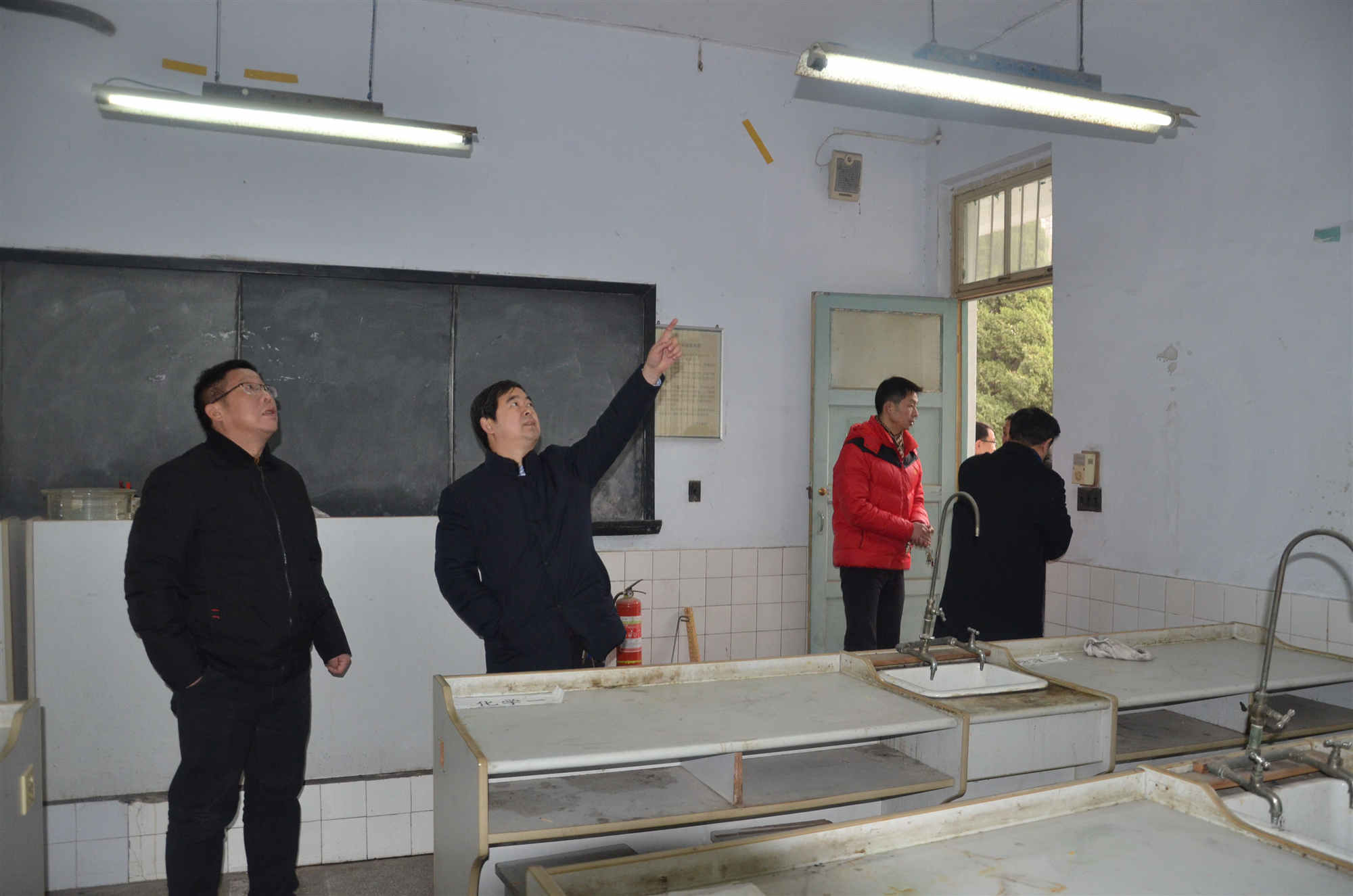 市教育局领导来我校检查指导实验室安全工作 在寒假即将来临之际,市教育局伍局长、市教育装备信息中心贺主任一行于1月15日下午4点半到我校检查指导实验室安全工作。伍局长、贺主任等领导深入实验室,通过听汇报、查记录、看仪器等环节现场办公,领导们对学校的做法给予了充分肯定,对存在的问题提出了整改意见。 学校领导迎接检查组一行 检查实验室相关工作 对实验室安全工作进行指导