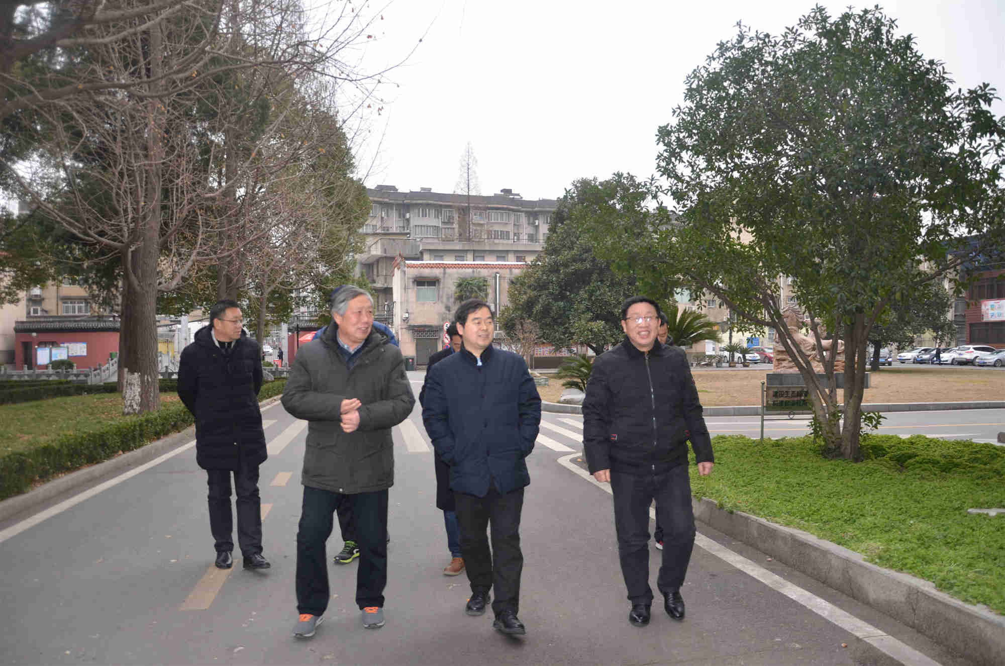 学校领导迎接检查组一行