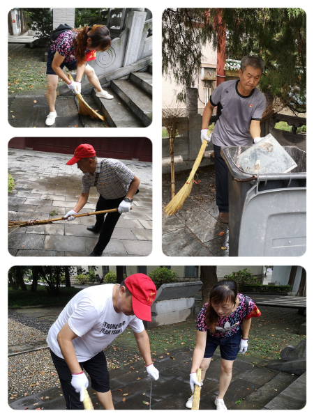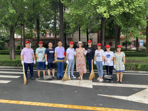 炎炎夏日,党员老师们不怕脏,不怕累,分工合作,动作迅速,任凭汗水湿透衣背也一刻不停,换来了校园的干净、整洁和美丽。