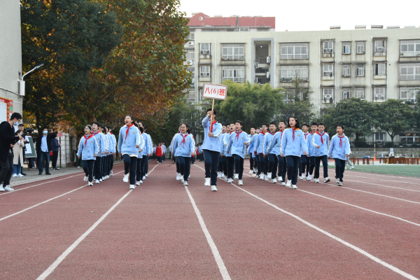在开幕式上,旗手们依次庄严地护卫着国旗、校旗最先入场。彩旗方队旗帜迎风飘扬,校志愿者方队高喊着“服务校园、帮助他人、提升自我、实现价值”的口号,雄纠气昂迈着整齐步伐,充满蓬勃向上青春气息走过主席台,紧随其后的是各班代表队,他们身着统一的校服,高举班牌迈着矫健的步伐,喊着响亮的班号,精神饱满地依次通过主席台,接受学校领导的检阅。最后是由校青年教师组成的裁判员代表队入场。每个方队入场时同学们发出了阵阵欢呼声。