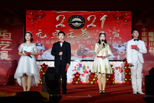 伴随着喜庆的开场短片,会场气氛热闹起来。校董事、党支部书记、校长杨立军致新年贺辞,他首先向关心和支持我校工作的社会各界人士表示崇高的敬意,向全体师生致以节日的问候。杨校长回顾了2020疫情下全体师生团结奋进、克难攻坚,在2020年中考中取得“中考八年胜、红胜红”的非凡成绩。展望未来,信心满满、意气风发,杨校长希望全校师生要继续发扬“不忘初心,牢记使命”的精神,发扬伟大的抗疫精神。